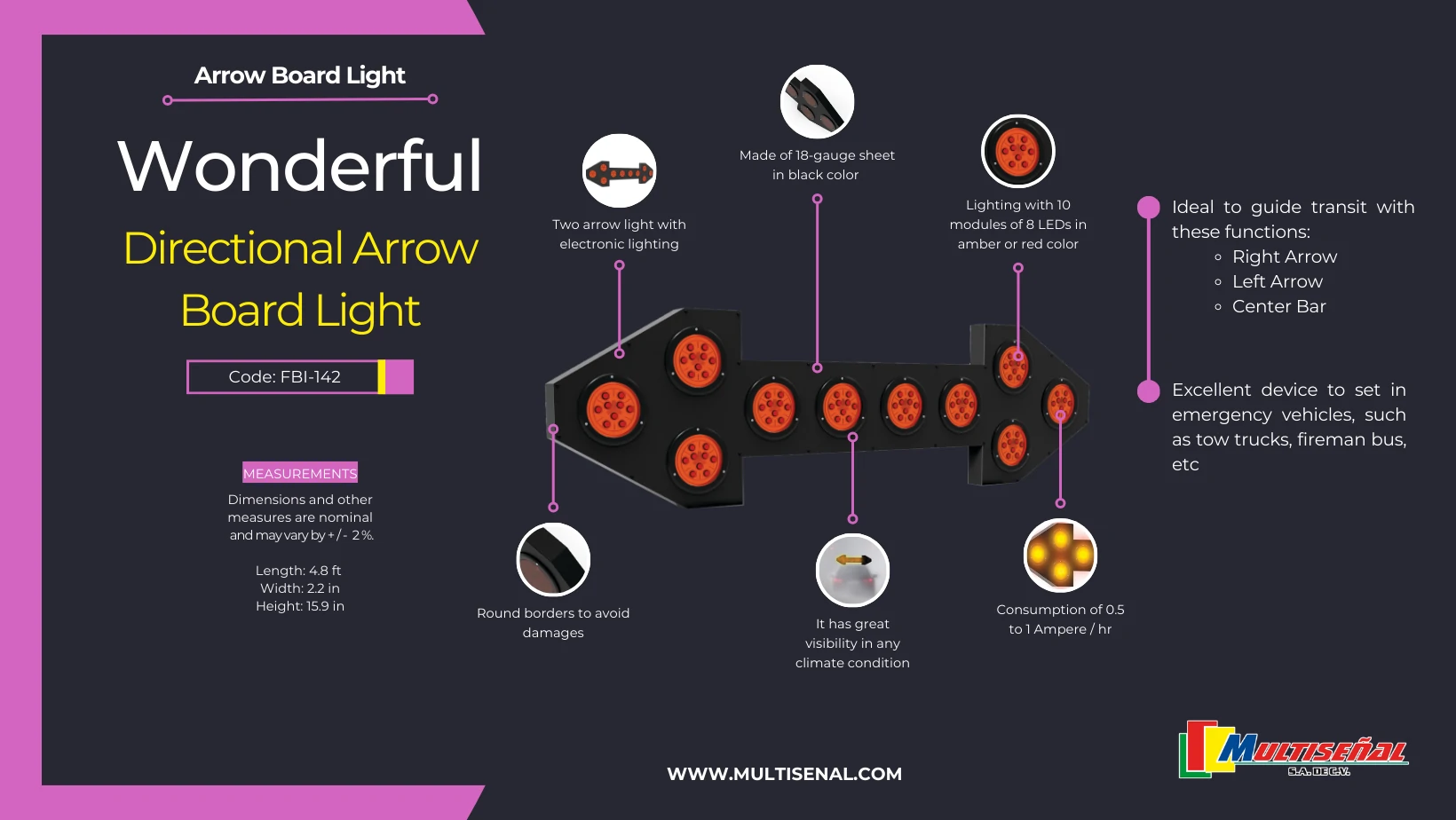 Our innovative solution of electronic light is designed to be your reliable guide in highways. Discover our broad product line as the Solar Arrow Boards or the Arrowboard.