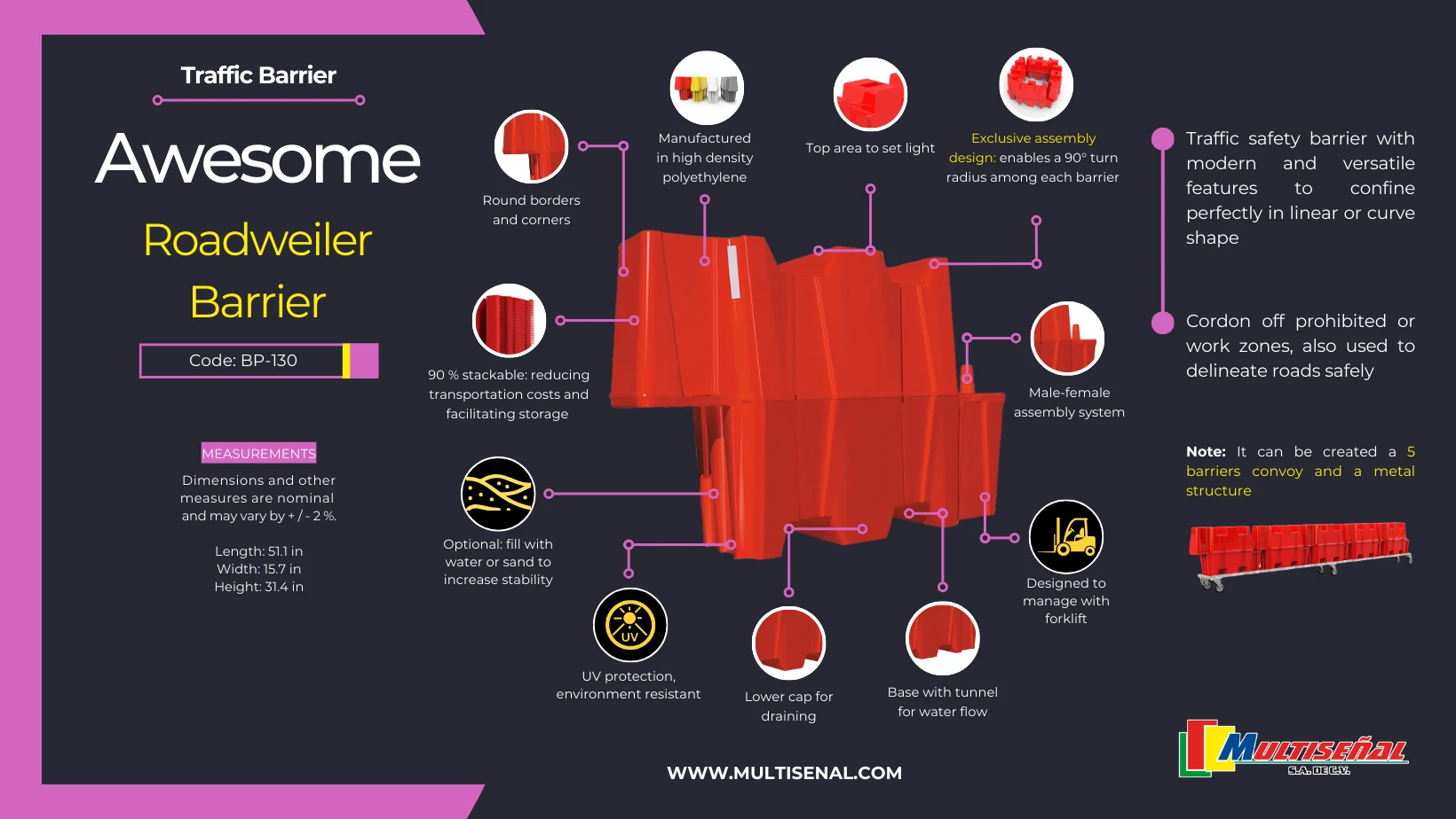 This barrier also known as Roadweiler-130 develops innovation and calm in the road project you deserve.