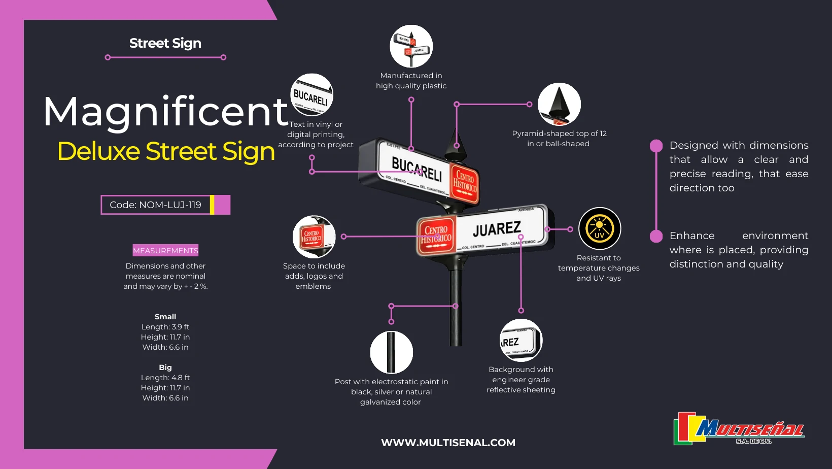 With these features, messages can maintain its integrity and appearance over time, ensuring a solid and durable investment that withstand adverse and climate conditions.
