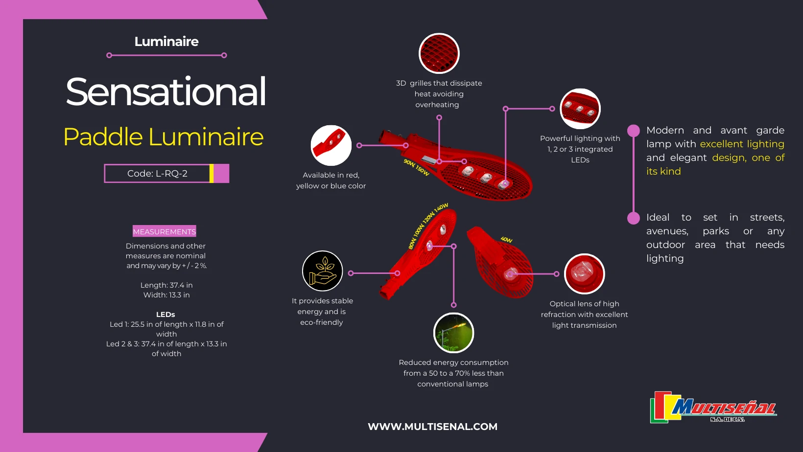 - Energy Efficiency and Sustainability: With a 50-70% less of energy consumption than regular lights, our LED Light Street Lamp is eco-friendly and allows you to enjoy a lighting quality with a minimum impact.