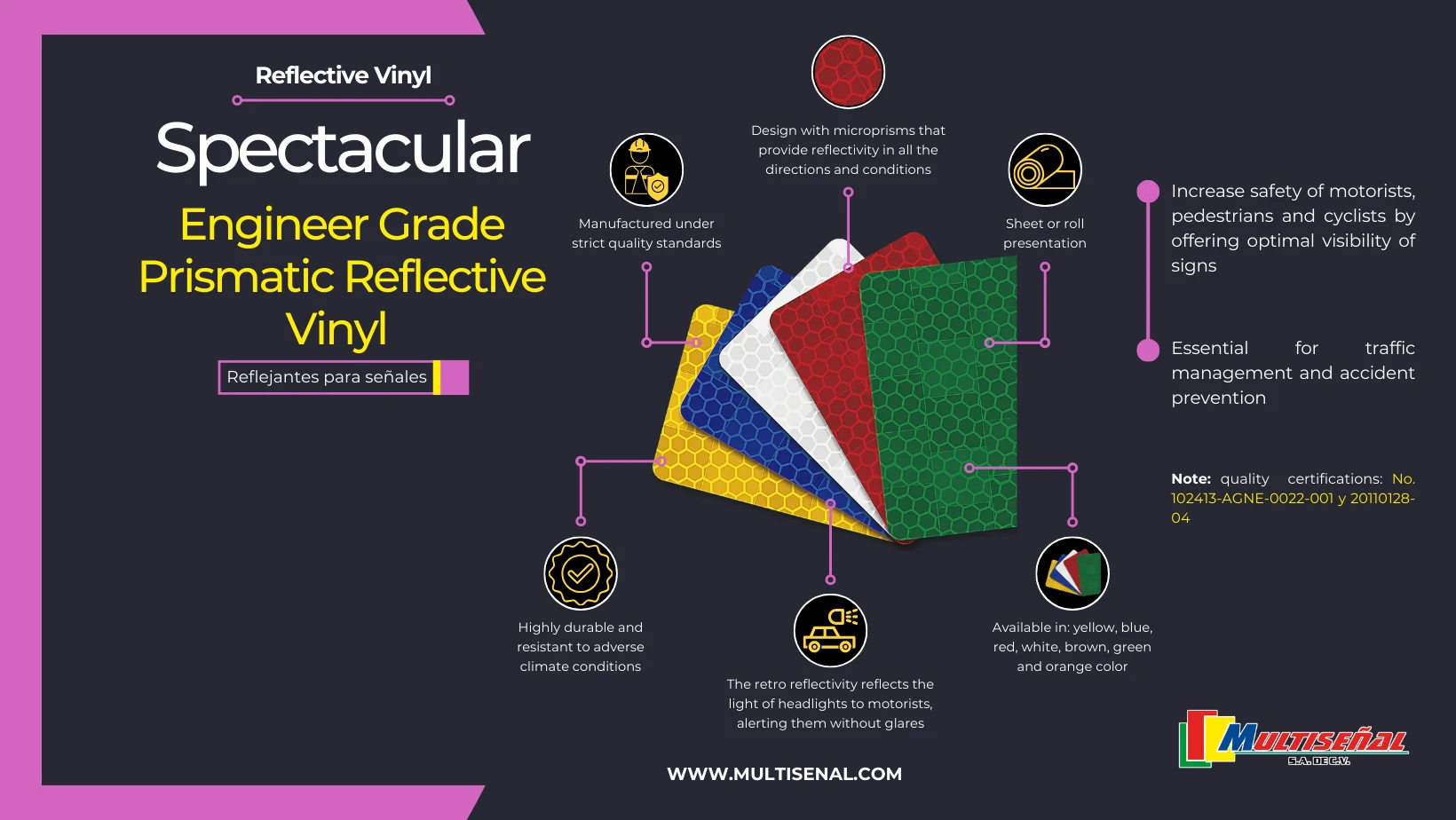 Whether is for a long-term road project or temporary signage in events, our High Intensity Prismatic Reflective Vinyl redefine reflectivity with a unique quality.
