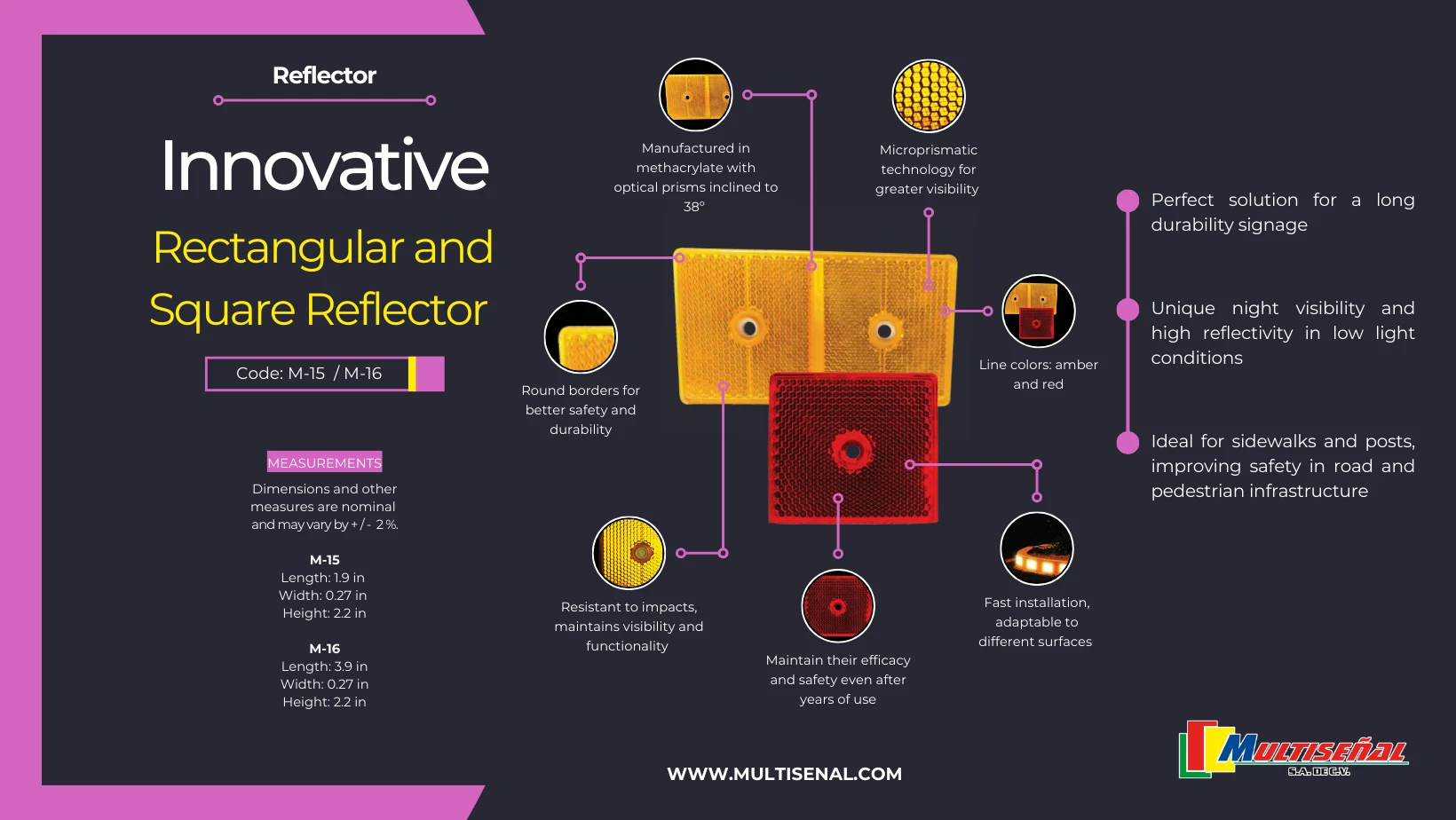 - Unique Night Visibility: Thanks to the micro prismatic technology of Reflexite, guarantees an exceptional visibility in night conditions, improving safety in highways and dark environments.