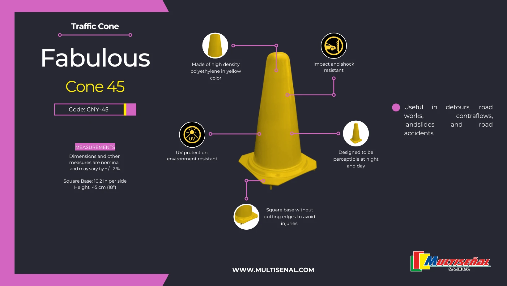 - Resistance to impacts: The semi-flexible cones by nature, offer exceptional resistance to impacts, ensuring durability and log-term maintenance.