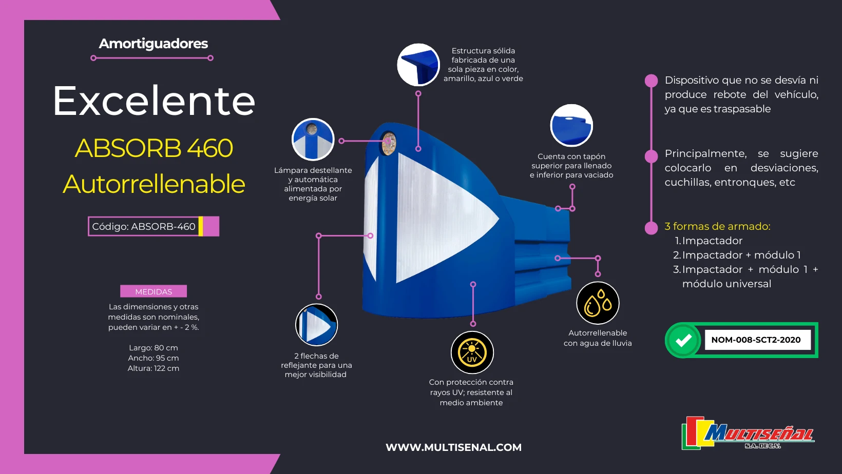 Descubre el Absorb 460 autorellenable, una solución integral que redefine la seguridad vial con su innovación, eficacia y compromiso con las normas de calidad.