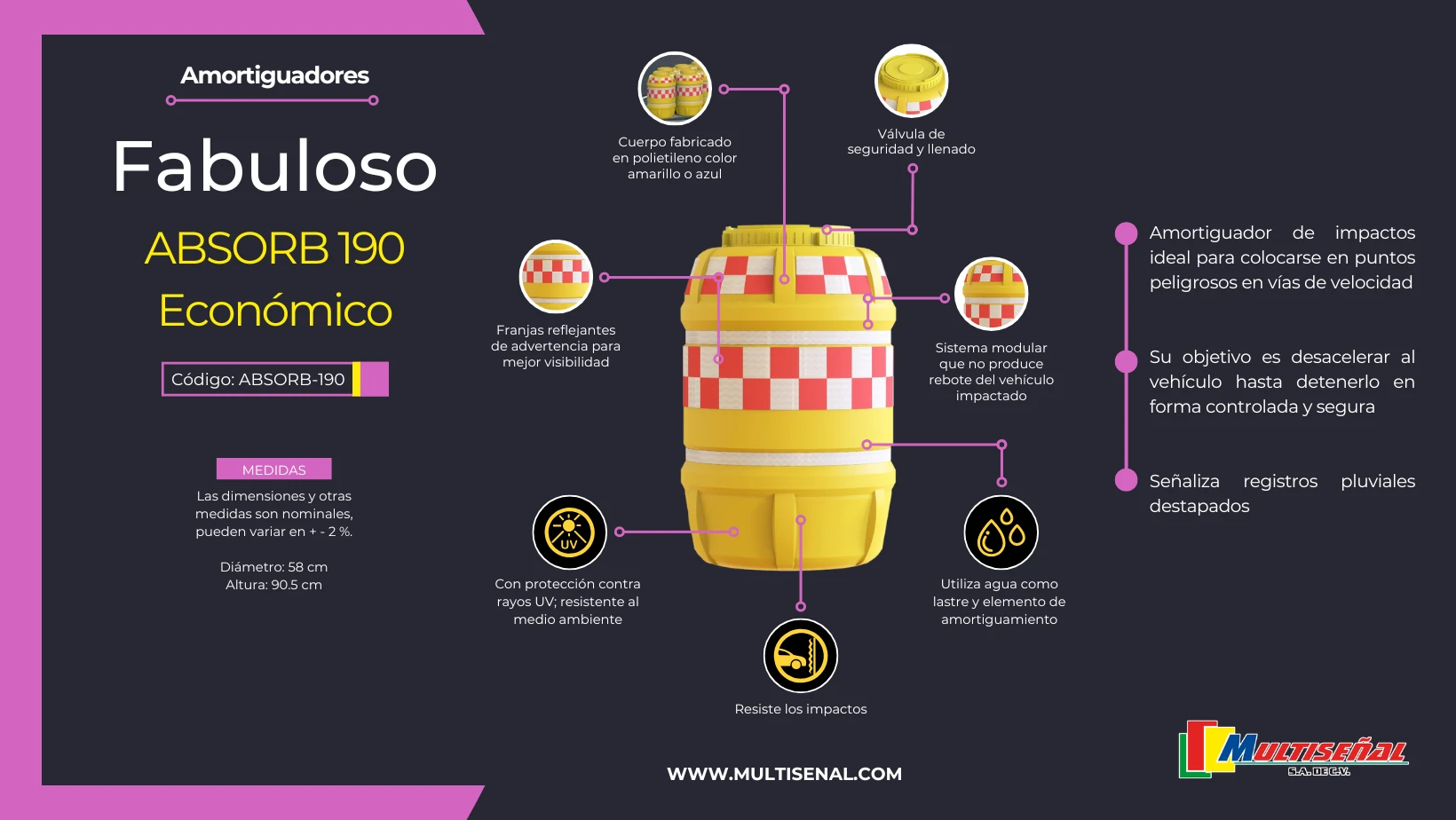 En resumen, absorbe impacto es mucho más que un simple amortiguador vial; es una solución integral que garantiza la seguridad de los vehículos al tiempo que cumple con los estándares normativos más rigurosos.