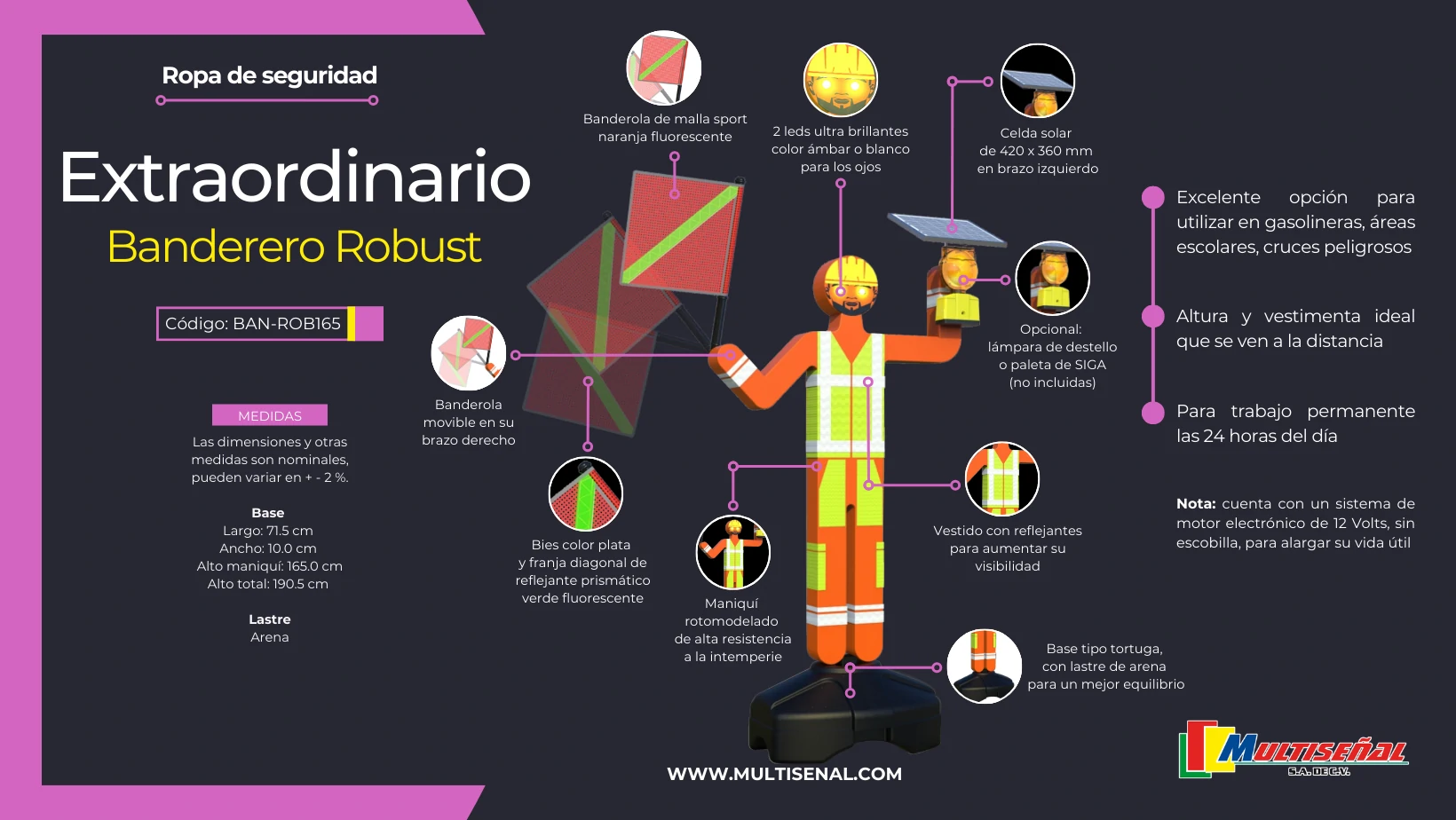 Conoce nuestros robots viales como los bandereros de seguridad vial, de excelente calidad y gran desempeño.