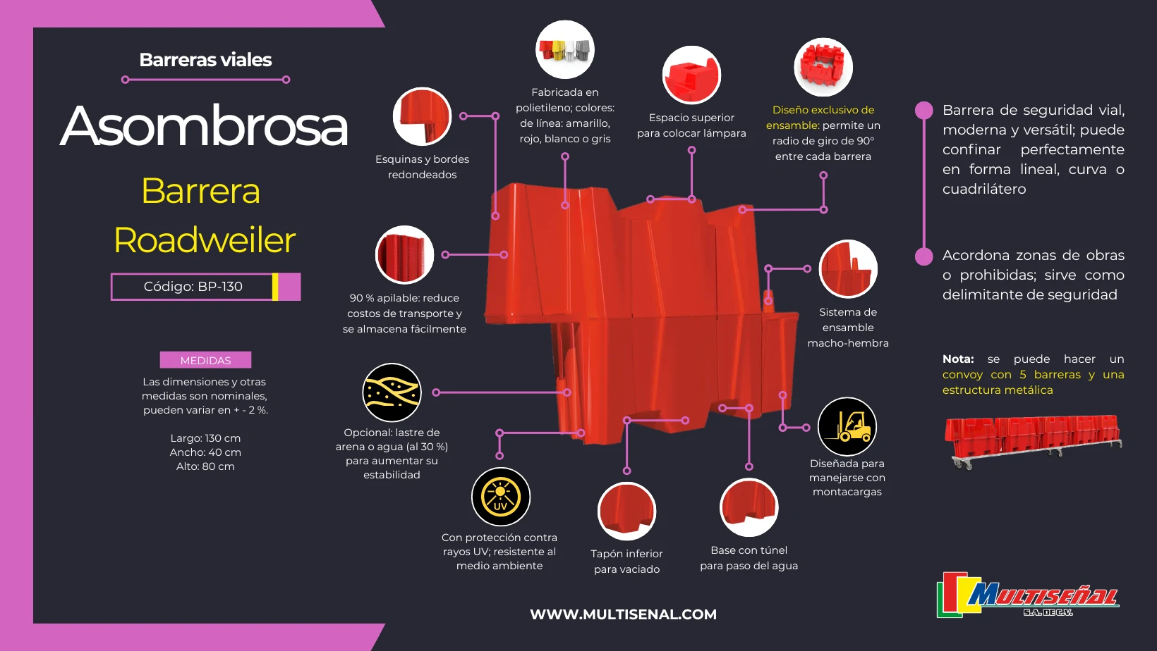 Con la también llamada Barrera Rodweiler-130, experimenta la innovación y la tranquilidad que tu proyecto vial merece.