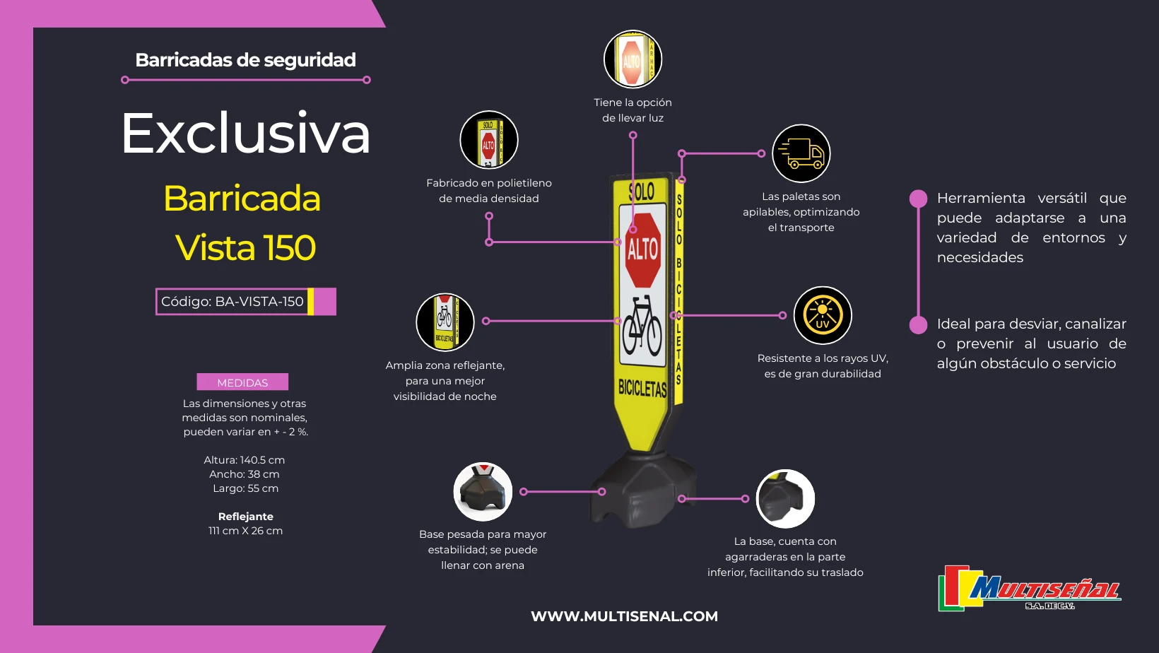 La barricada vista 150, un dispositivo publicitario de gran impacto, se destaca por sus dimensiones generosas y su amplio espacio para mensajes promocionales.