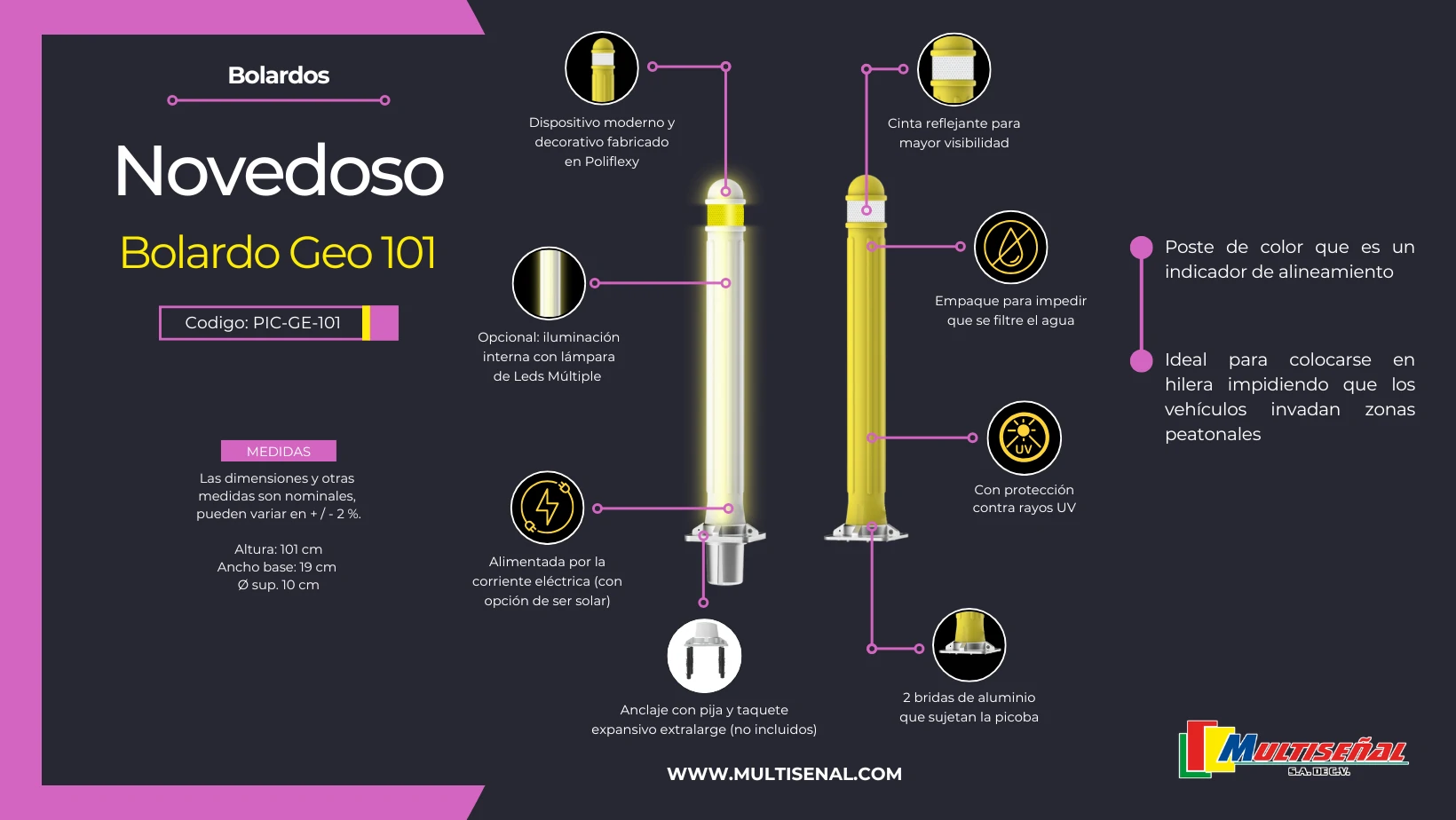 - Prevención de intrusiones: Su función principal es evitar la invasión de vehículos en áreas prohibidas, sirviendo como delimitante vial y proporcionando una solución efectiva para prevenir intrusiones en zonas peatonales.