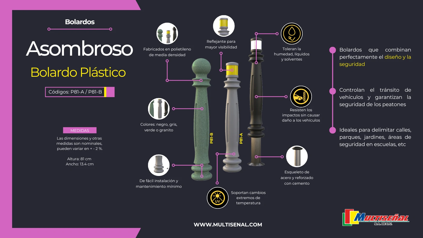 - Resistente a la humedad, líquidos, solventes y cambios extremos de temperatura, este bolardo es el guardián ideal en cualquier entorno.