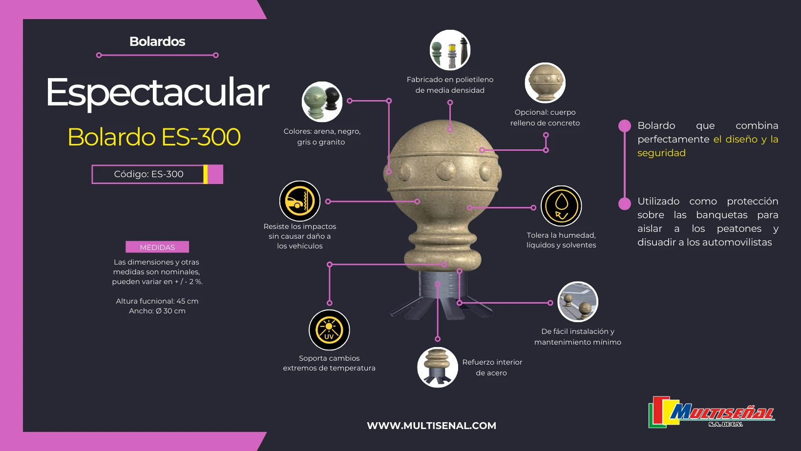 - Resistencia sin daño:El polietileno utilizado brinda protección robusta sin causar daños importantes a los vehículos, asegurando la integridad de calles y banquetas.