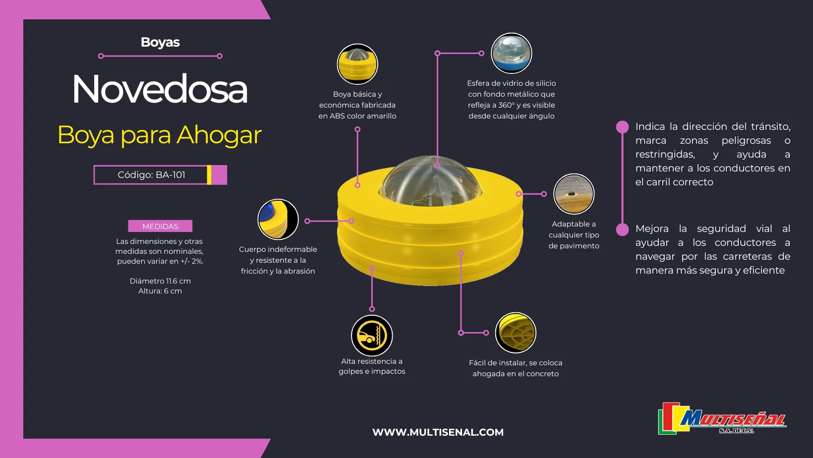 Atrévase a mejorar la seguridad vial con este boya vial que combina estética, funcionalidad y durabilidad en un solo producto. O bien conozca toda nuestra gama de boyas como la sinigual boya solar soterrada.