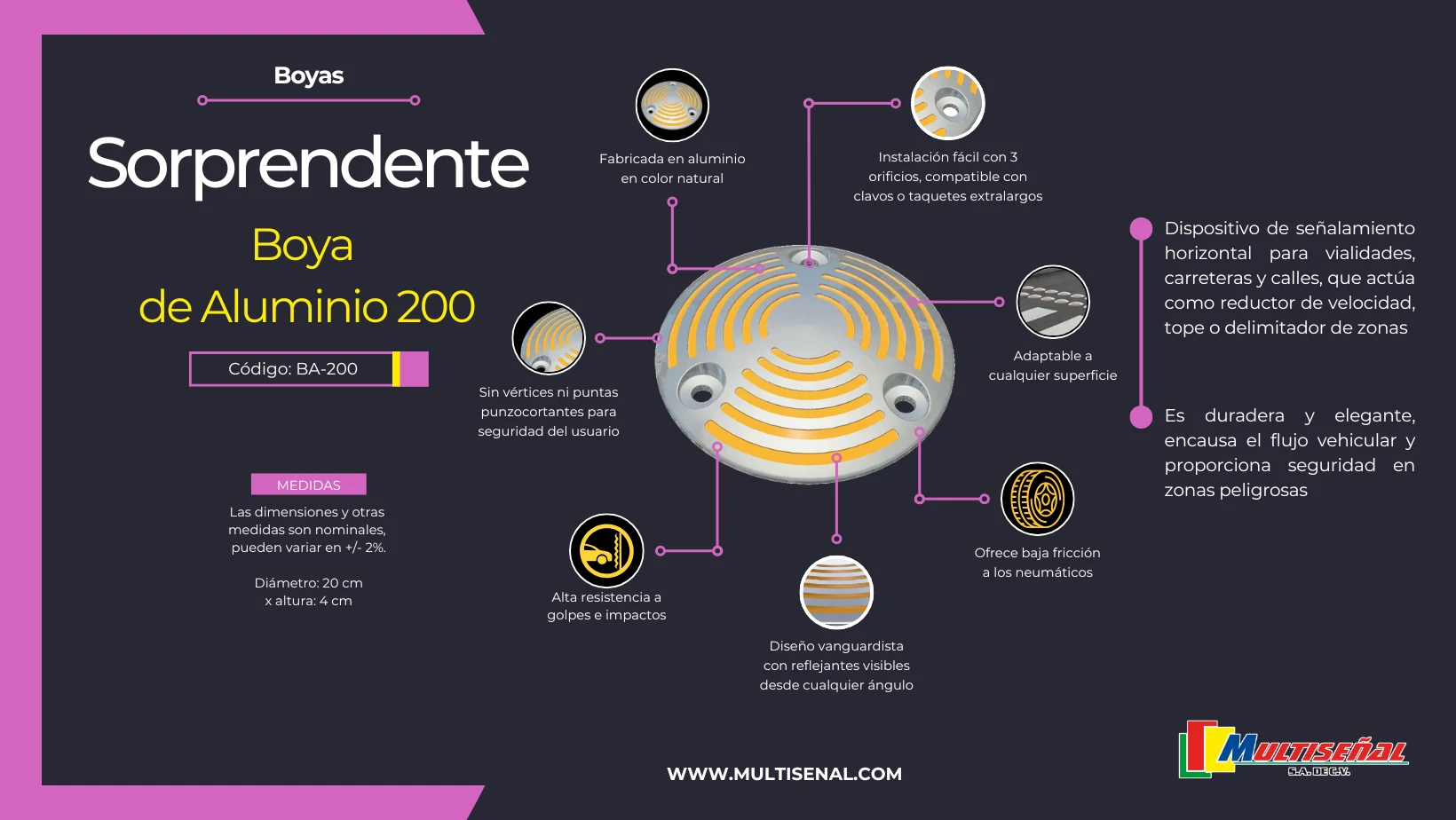 Las boyas en carreteras o de aluminio, un innovador dispositivo de señalamiento horizontal, desempeñan un papel esencial en la gestión del tráfico en vialidades, carreteras y calles urbanas.