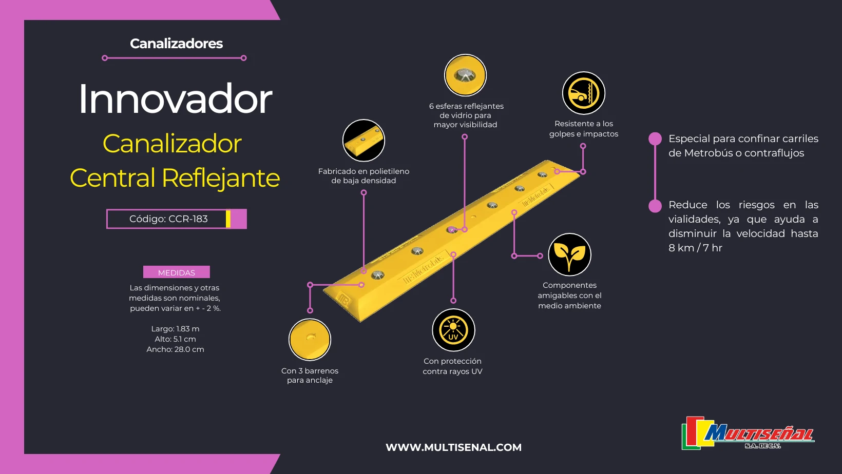 Con el canalizador central reflejante, no solo se garantiza la seguridad vial, sino que también se promueve una opción ecológica y duradera para mejorar la infraestructura urbana.