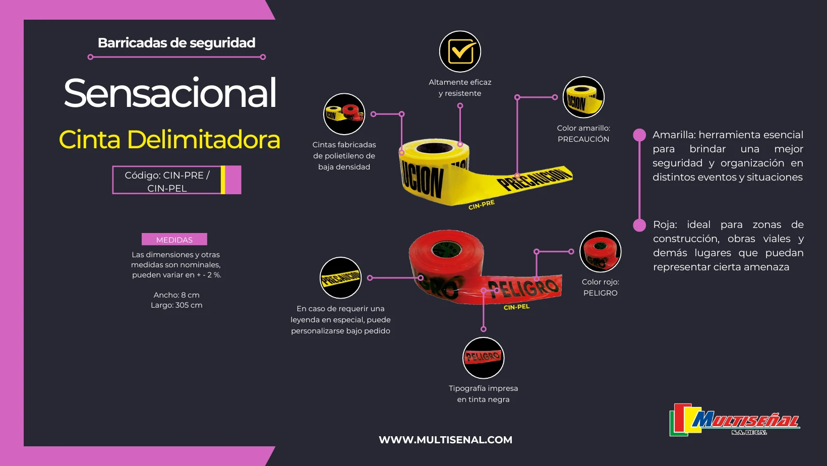 Descubre la calidad excepcional de nuestra línea de productos viales, entre ellos la destacada cinta plástica delimitadora amarilla, reconocida por su rendimiento sobresaliente.
