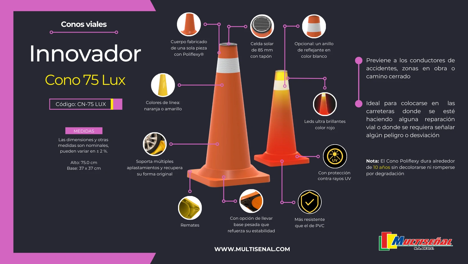 Prueba también otros productos como el cono solar o la señal de alto com luz, señalizaciones que te llevan a una conducción más segura y eficiente.