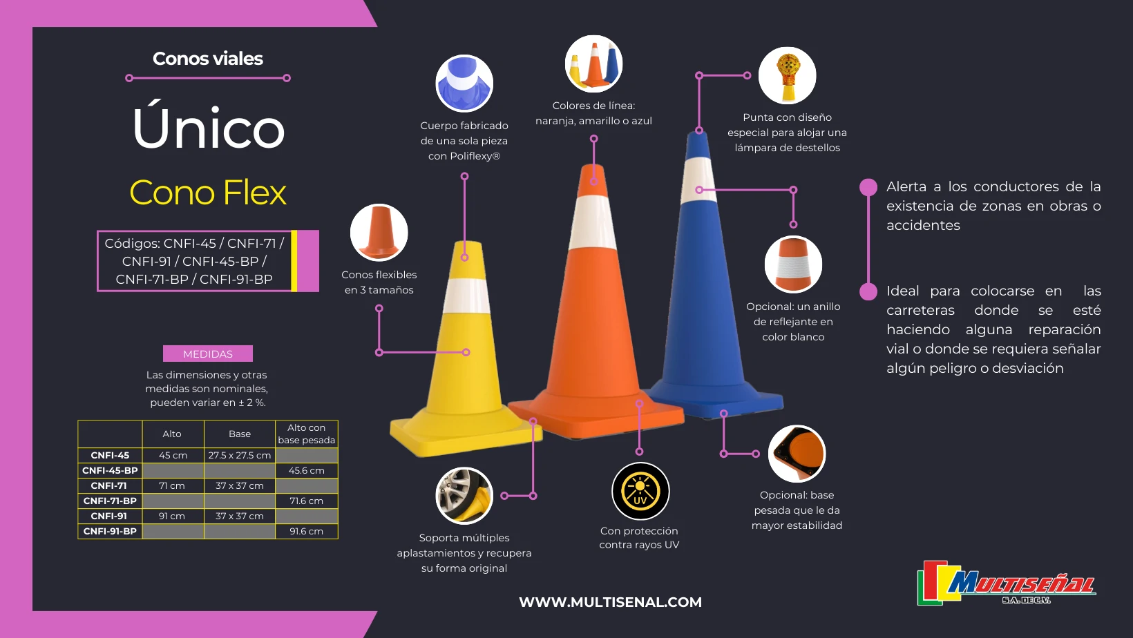 Eleva la señalización vial a un nuevo nivel con los conos Flex 91, tu elección segura para seguridad y durabilidad inigualables.