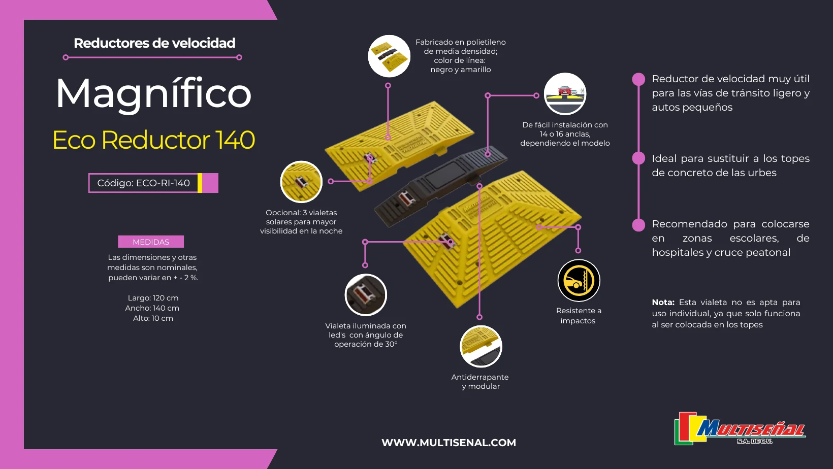 Con el Eco-Reductor 140, estamos comprometidos a transformar la experiencia de conducción, proporcionando soluciones viales avanzadas y sostenibles para comunidades más seguras y eficientes. ¡Descubre la revolución en seguridad vial con Eco-Reductor 140!
