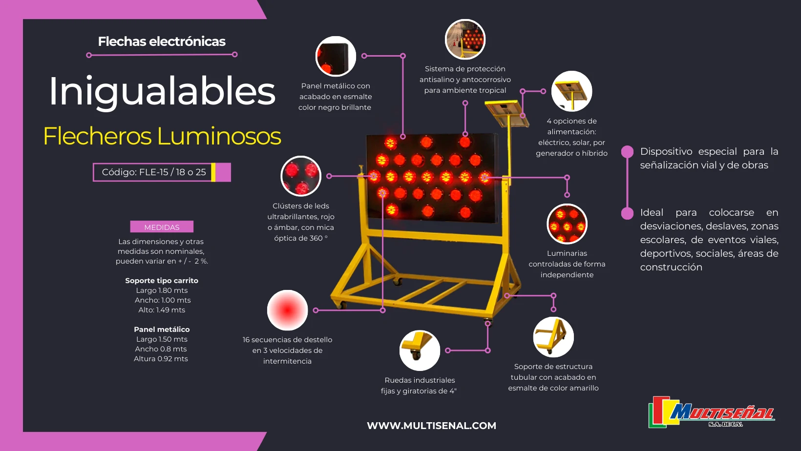 Nuestro flechero luminoso no solo ofrecen una señalización clara y eficiente, sino que también garantizan durabilidad y funcionamiento constante en diversas condiciones ambientales.