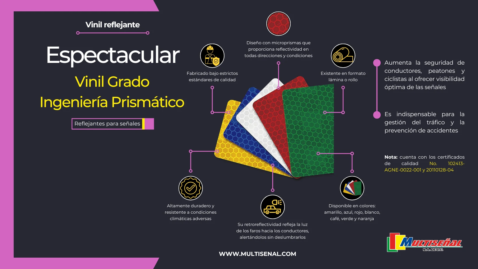 Ya sea para proyectos viales a largo plazo o para señalización temporal en eventos, nuestro reflejante grado ingeniería prismático redefine la reflectividad con una calidad inigualable.