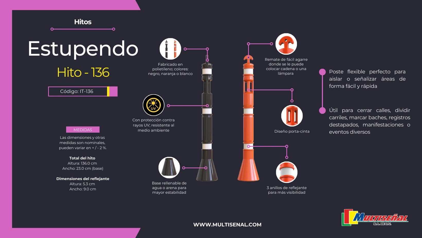 Conoce más de nuestros productos viales como el hito maxi mediano y conoce los grandes beneficios que ofrece.