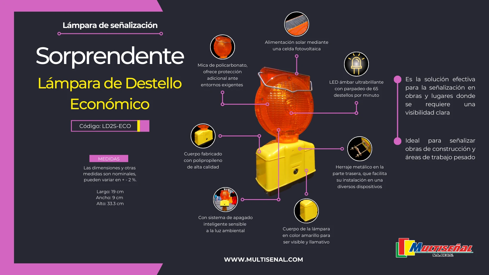 Descubre nuestra innovadora lámpara de destello económica, diseñada específicamente para obras viales y de construcción.