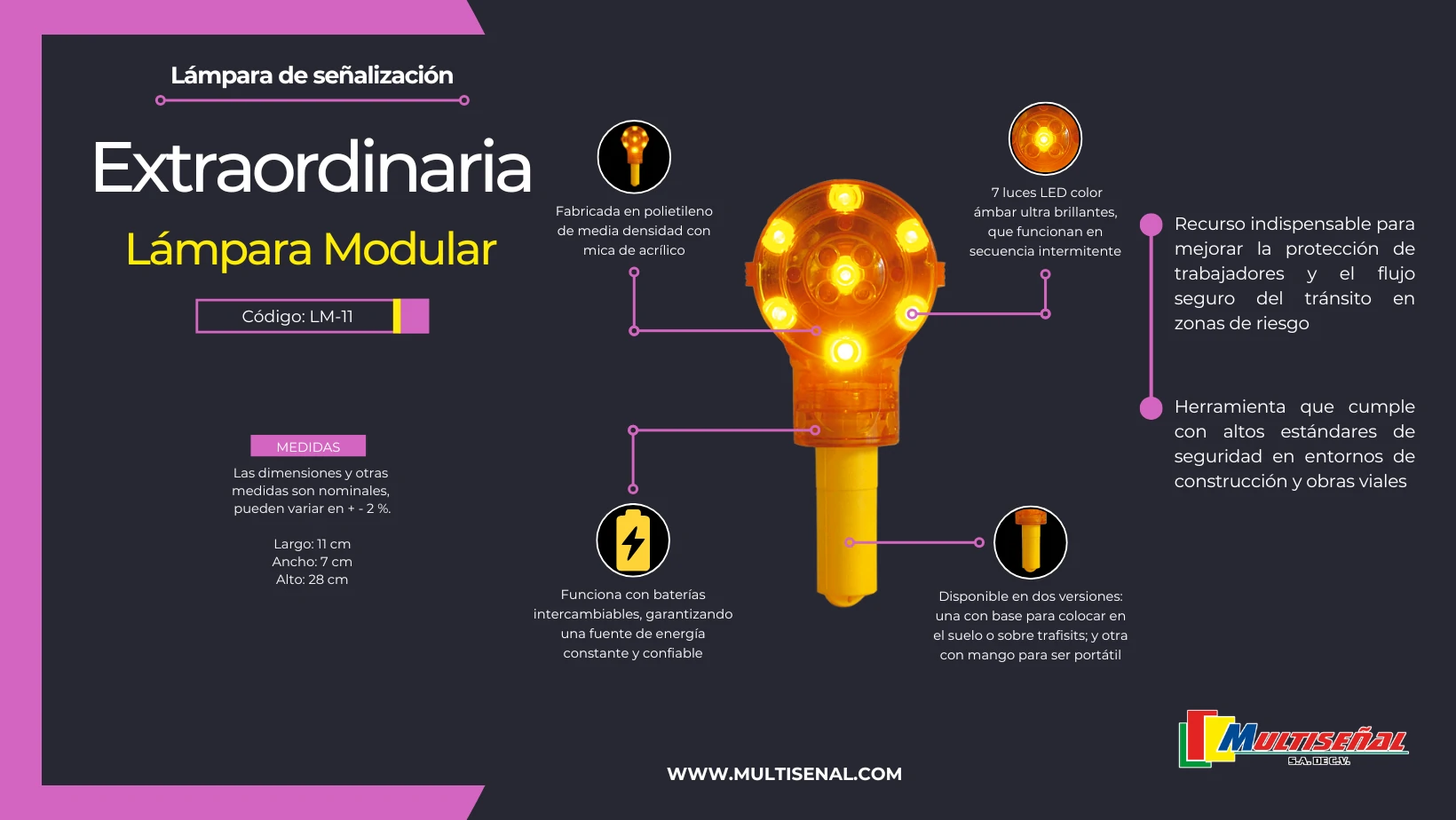 Te presentamos nuestra innovadora lámpara modular vial, la elección perfecta para señalización eficiente en obras viales y reparaciones.