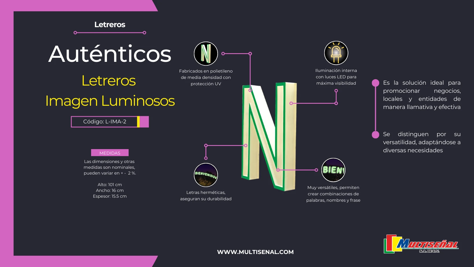 Experimenta la distinción que ofrecen nuestros letreros imagen luminosos, diseñados con la excelencia que mereces. Se han concebido para señalizar con majestuosidad, ya sea marcando el inicio o final de municipios y ciudades, o para anunciar con impacto negocios de gran envergadura, plazas comerciales u oficinas.