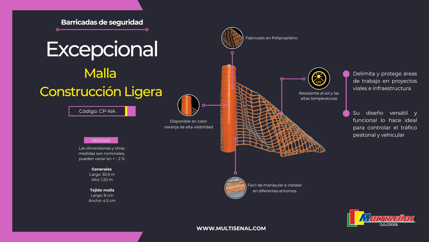 - Versátil para cercar, dividir áreas y acordonar zonas de obras permanentes.