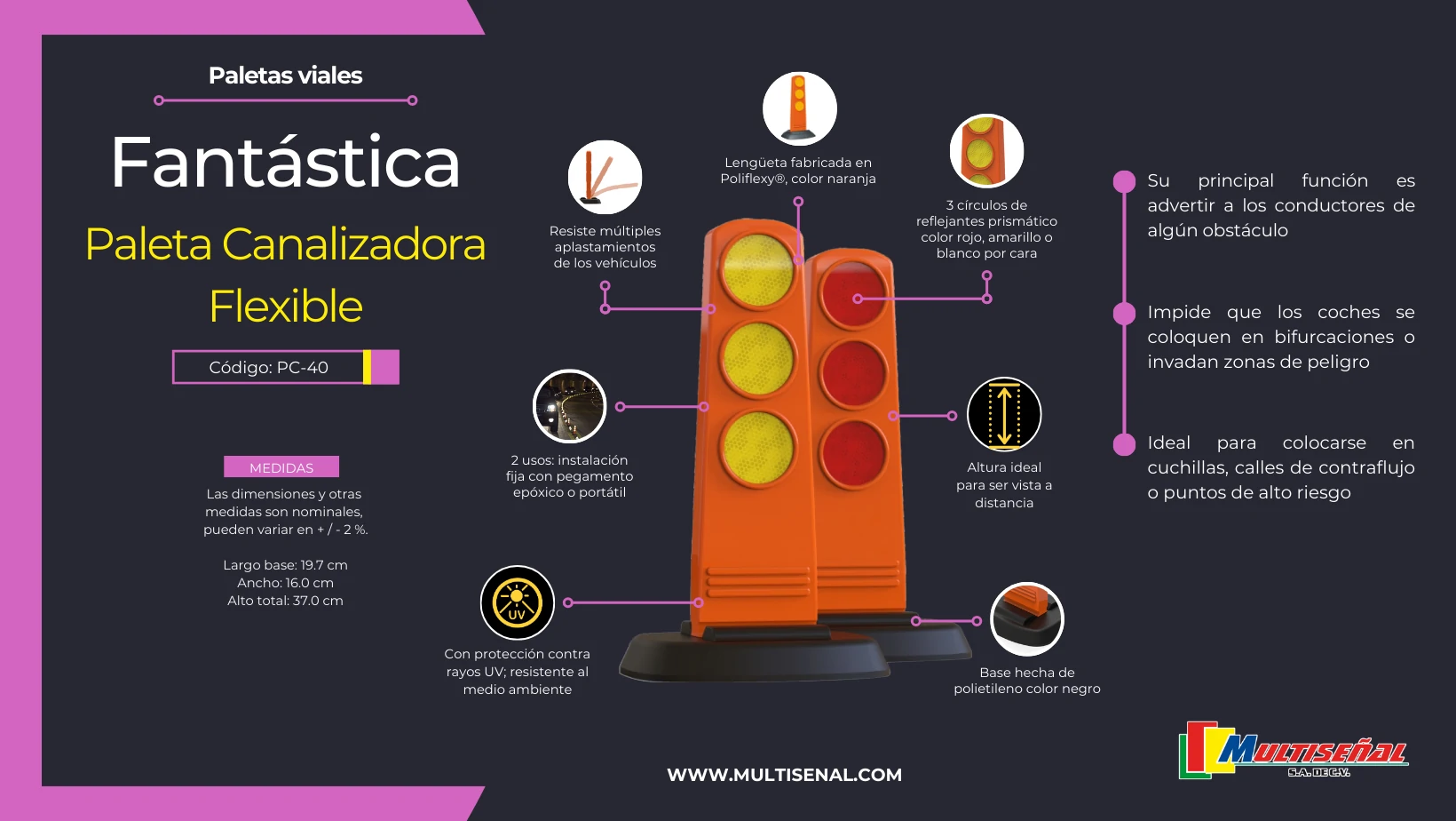 Descubre una solución única para tus necesidades de control de tráfico con nuestra innovadora paleta canalizadora flexible.