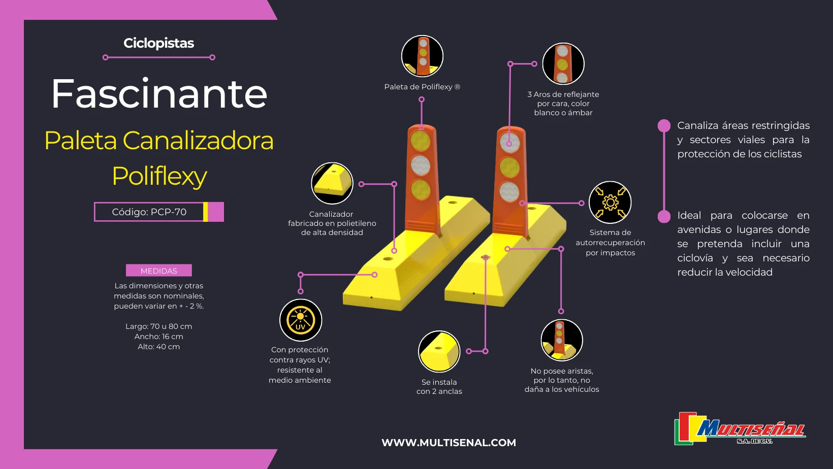 La paleta canalizadora poliflexy representa la conjunción perfecta entre innovación, seguridad y eficiencia, marcando un hito en la gestión inteligente de la movilidad urbana.