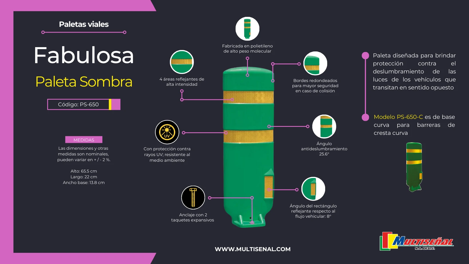 Eleva los estándares de seguridad vial con la paleta de sombra PS-650, una combinación perfecta de innovación y funcionalidad para mejorar la experiencia en carretera. ¡Haz de la seguridad vial una prioridad con este producto de vanguardia