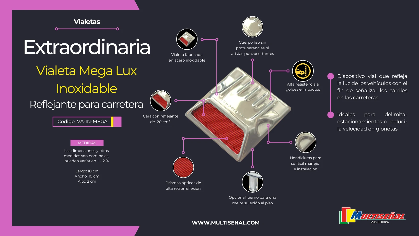 La vialeta reflejante diseñada para carreteras presenta una estructura innovadora que la convierte en el accesorio perfecto para conferir elegancia a cualquier calle, avenida o glorieta.
