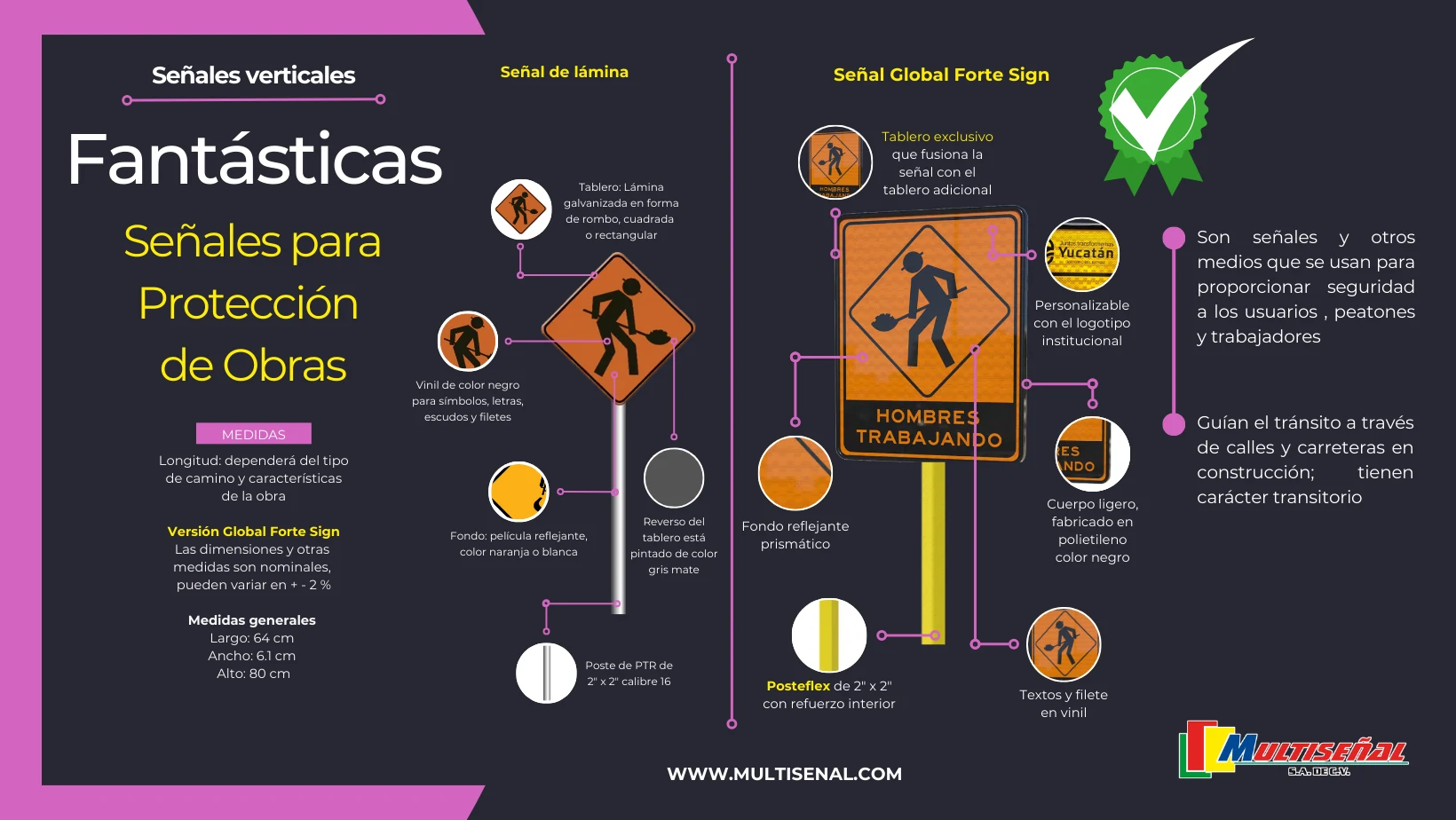 - Tablero robusto: Fabricado con lámina galvanizada calibre 16 en forma de rombo, cuadrada o rectangular, según las normativas de la SCT.
